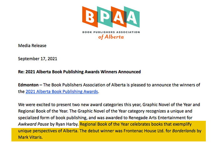 Borderlands was listed Number 8 on the Calgary Herald Best Seller List for Non-Fiction. August 15th, 2020